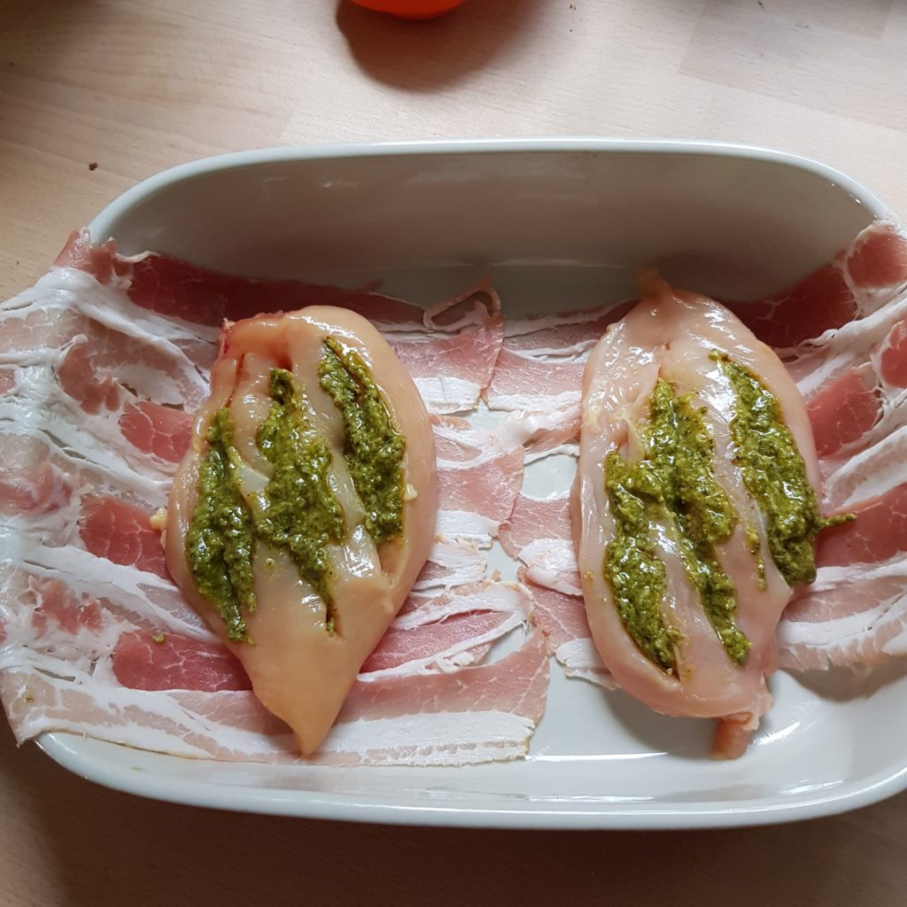 Recettes des Escalopes de poulets roulées au pesto, poitrine fumée et emmental